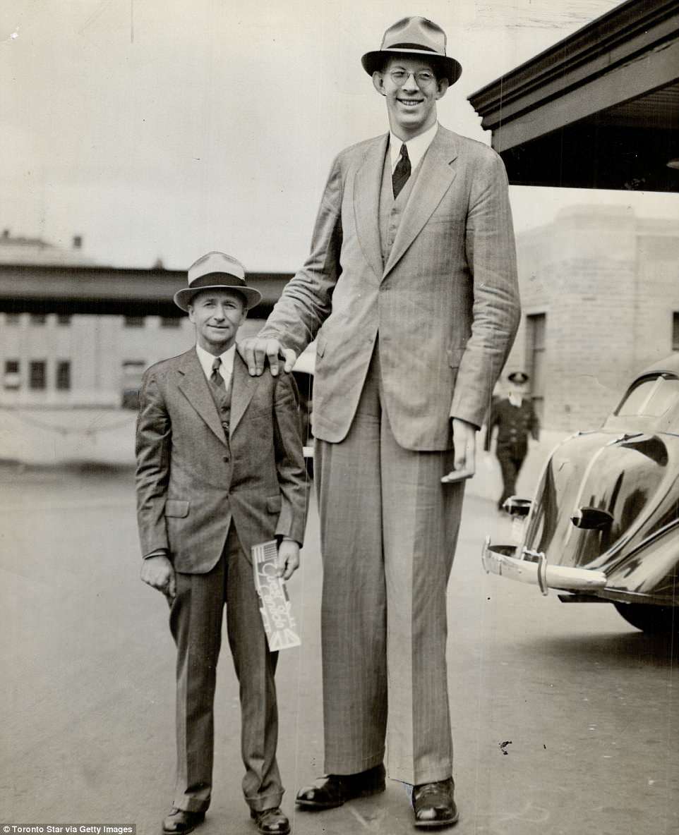 Getty Images/New York Daily News ArchiveРост 8 футов 11 дюймов, Роберт Уодлоу был самым высоким человеком в истории, хотя на этой фотографии, сделанной в 1937 году, он еще не достиг своего полного роста.