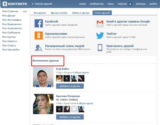Социальная сеть сама подскажет кого вы можете знать. Вам порекомендуют знакомых тех, кого вы уже добавили. При подтверждении заявки, человеку будет показано, что у вас есть общие товарищи. И если даже он оставит запрос без внимания, то по крайней мере не отправит вас в спам, что мгновенно приведет к блокировке аккаунта.