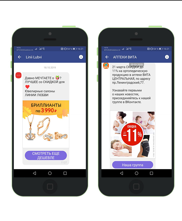 Можно улучшить конверсию продаж посредством размещения в сообщении привлекательных интерактивных ссылок. - Высокий интерес клиентуры поддерживается грамотно составленным, персонализированным сообщением с изображениями и текстом. Рассылка Viber (Вайбер) позволяет совместить рекламный слоган и фотографию товара, продукта, услуги.