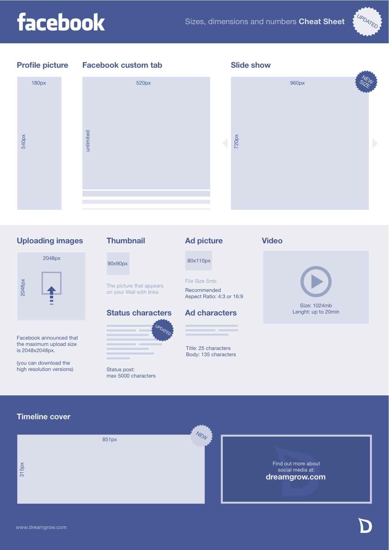 Изображение суммирует размеры фотографий Facebook, которые я поместил в высоком разрешении 2000 пикселей.