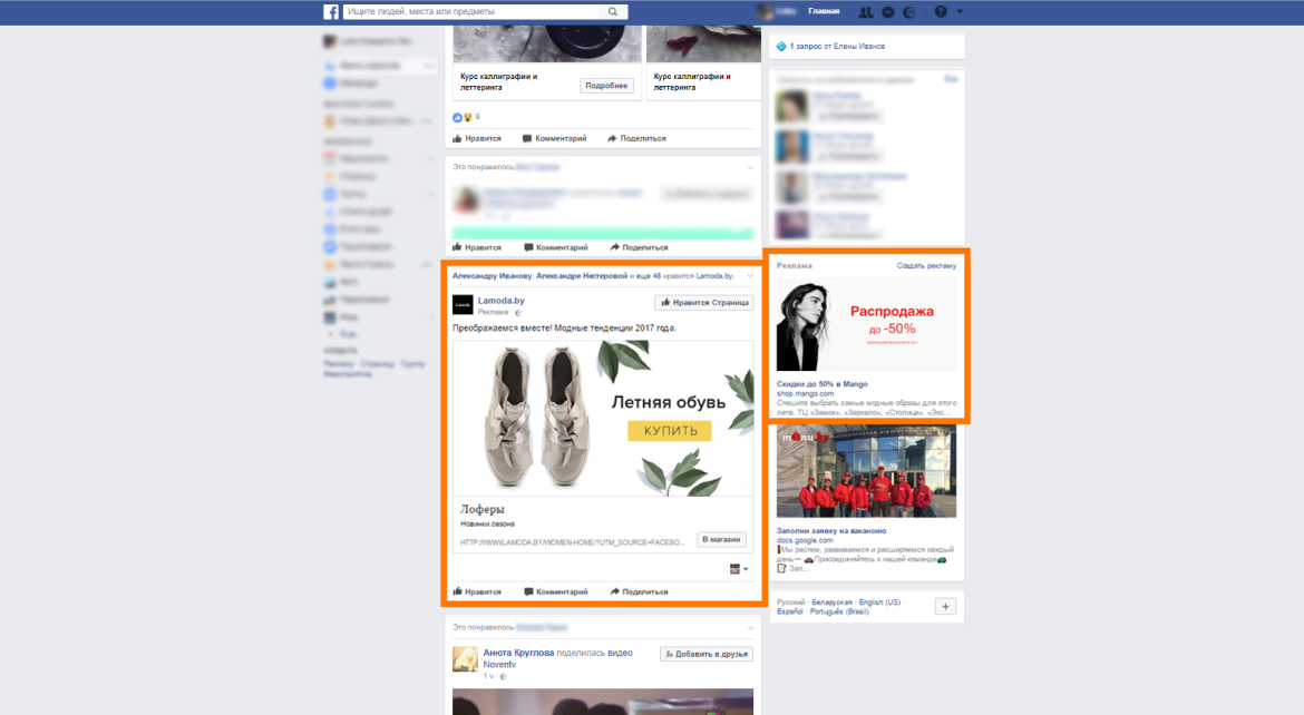 На стоимость также влияет место размещения рекламного объявления. В Facebook есть несколько вариантов размещения: