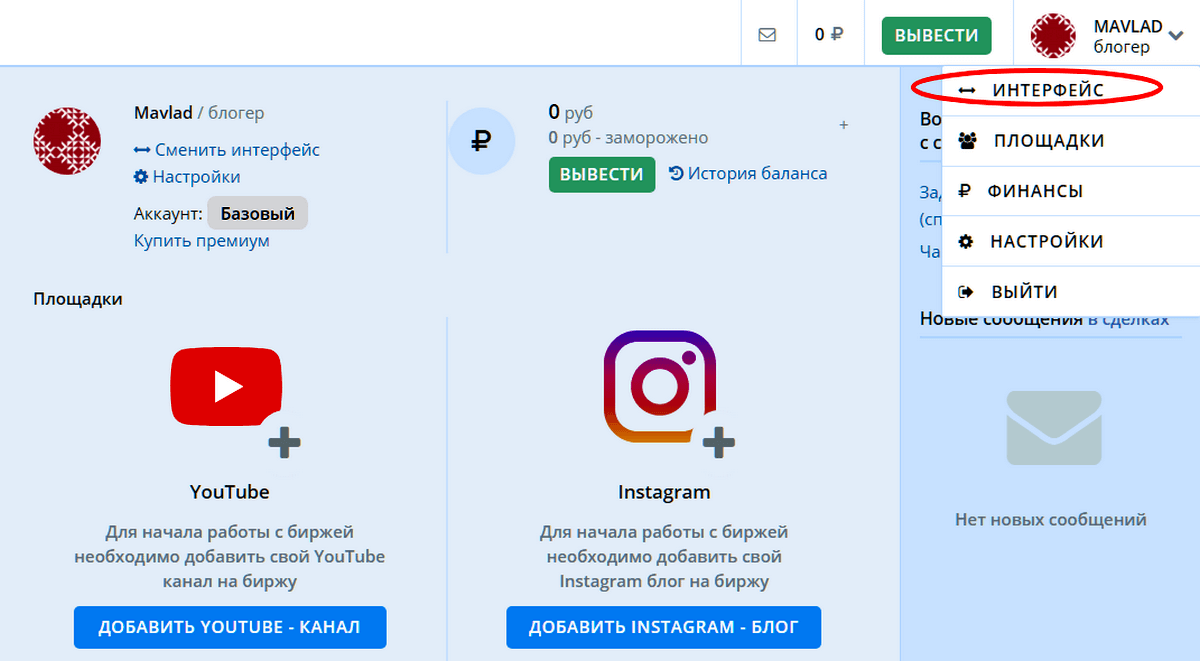 Самостоятельно выбирать аккаунты не получится. После регистрации компания попадает в личный кабинет, откуда может связаться с менеджером площадки или создать заявку на рекламу.