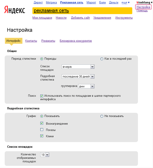 Панель управления вы можете использовать не только как показатель эффективности вашего сайта (его доходность), но и доходность каждого рекламного блока в отдельности.