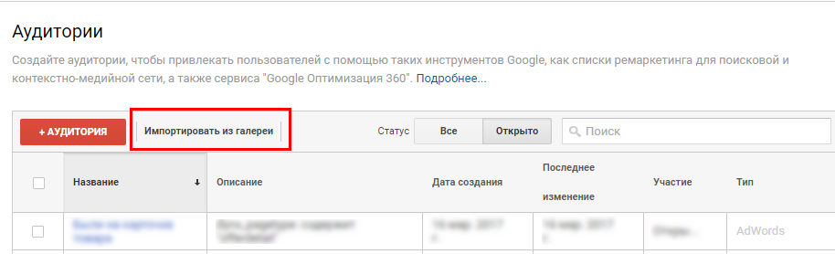 ΠΡΡΠ³ΠΎΠΉ Π²Π°ΡΠΈΠ°Π½Ρ ΡΠΎΡΠΌΠΈΡΠΎΠ²Π°Π½ΠΈΡ Π°ΡΠ΄ΠΈΡΠΎΡΠΈΠΈ ΡΠ΅ΠΌΠ°ΡΠΊΠ΅ΡΠΈΠ½Π³Π° β ΡΠ΅ΡΠ΅Π· Google Analytics. ΠΠΎ Π²ΠΊΠ»Π°Π΄ΠΊΠ΅ Β«Π Π΅ΡΡΡΡΒ» ΠΆΠΌΠ΅ΠΌ Β«ΠΠ°ΡΡΡΠΎΠΉΠΊΠΈ Π°ΡΠ΄ΠΈΡΠΎΡΠΈΠΈΒ», ΠΏΠΎΡΠΎΠΌ Β«ΠΡΠ΄ΠΈΡΠΎΡΠΈΠΈΒ».