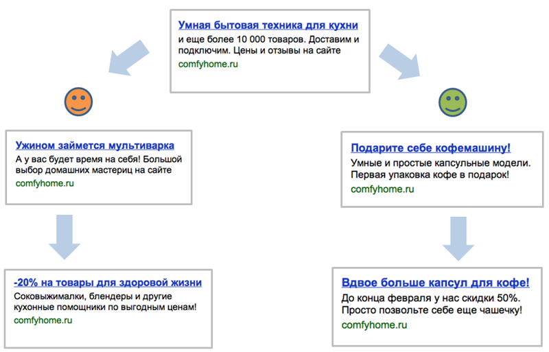 Создайте общий посыл для тех, кто искал какой-то товар, но по итогу бросил корзину — таким людям можно показать напоминание или дать купон/скидку прямо в поисковых объявлениях.