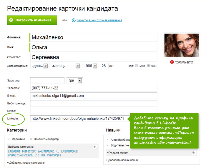 - Живой редактор резюме