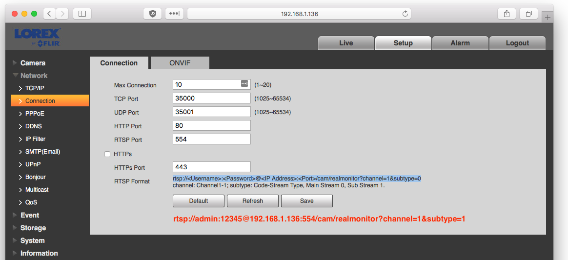 - rtsp://192.168.0.100/h364 — пример настоящей ссылки.
