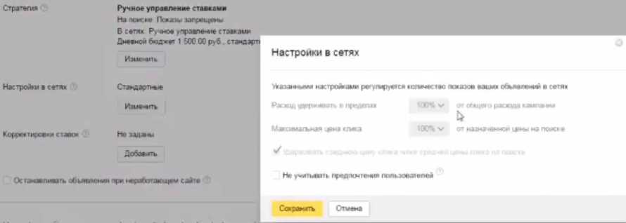 Отключение ручного управления ставками в РСЯ