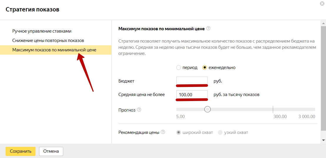 - Брендинг путем максимизации показов при минимальной цене за тысячу показов