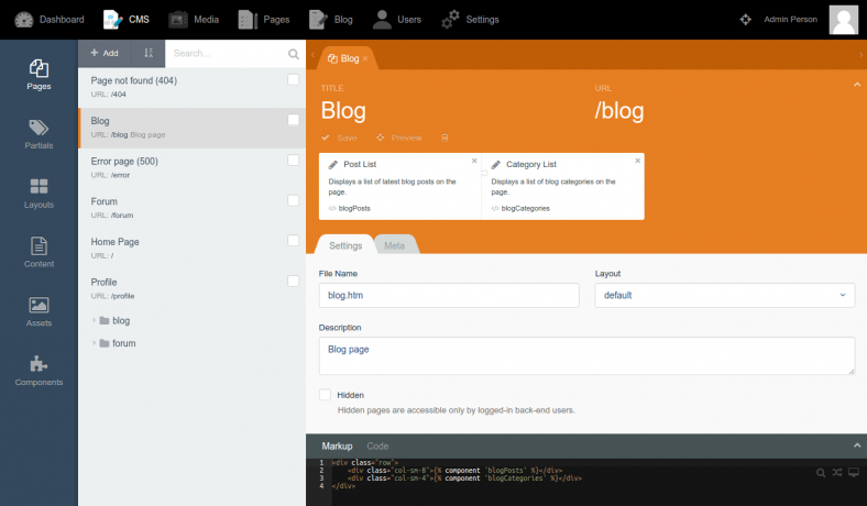 Automad — это файловая CMS, разработанная для работы без какой-либо зависимости от базы данных. Вы можете добавить контент на основе текста, сохраненный в формате .txt и загруженный в папку страниц. Если вы не являетесь поклонником кодирования, вы можете использовать веб-интерфейс пользователя, чтобы легко добавлять контент и галереи.
