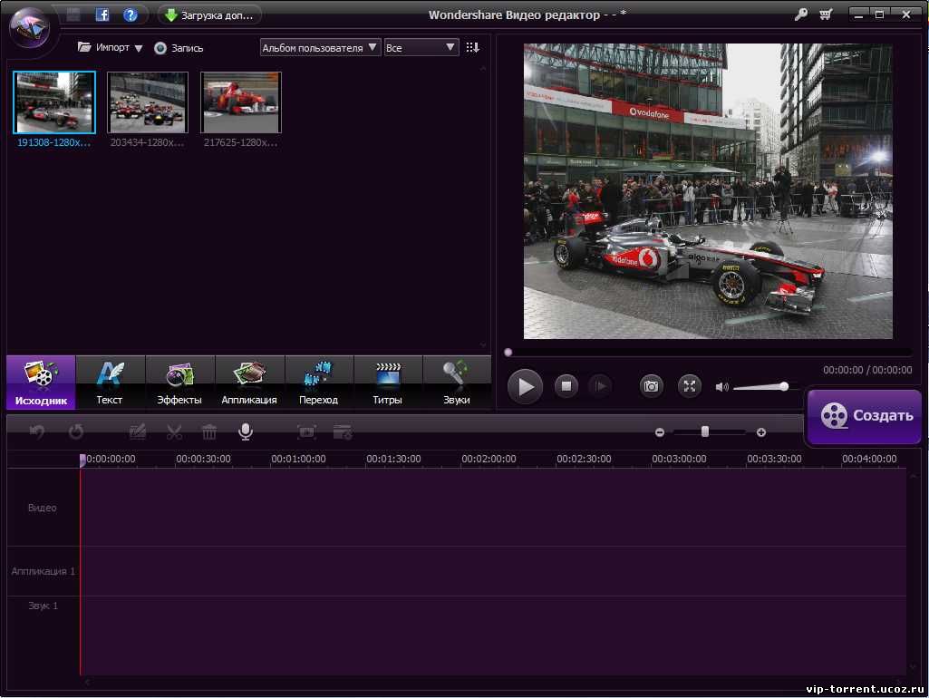 Видеоредактор работает на русском языке и позволяет добавлять в проект любое число видеофайлов. Поддерживается все современные видеоформаты, результат можно сохранить на жесткий диск, записать на диск или оптимизировать для карманных гаджетов. ПО устанавливается на любую версию Windows, нагрузка на систему минимальна.