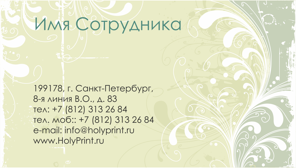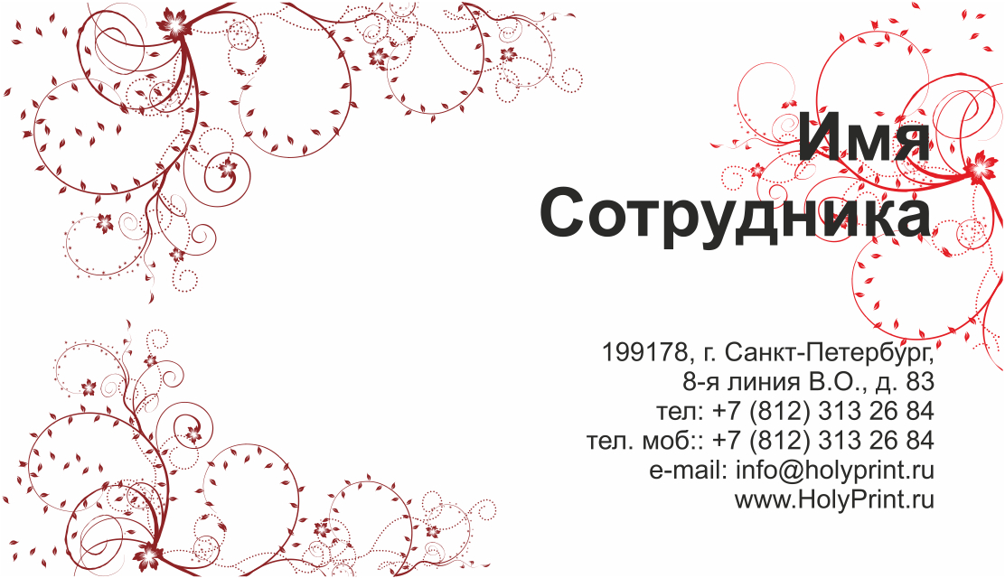 Вы можете выбрать бесплатные визитные карточки в альбомной или портретной ориентации, загрузить свой собственный дизайн или создать макет визитки в конструкторе на сайте.