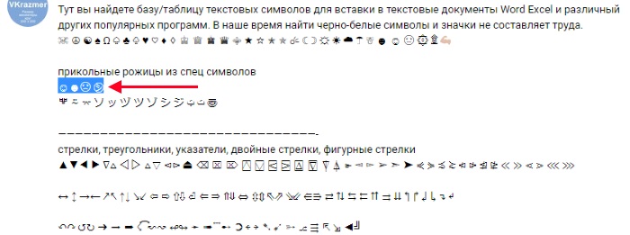 Листая вниз сайт с юникодами, можно набрать множество интересных символов, которые будут видны другим пользователям социальной сети. Главное запомните порядок действий — скопировали, вставили.