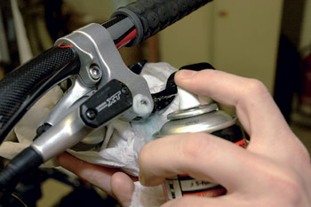 Эти детали требуют всего каплю смывки, чтобы удалить выступившее на корпус масло и вытереть его тряпкой насухо. На оси вращения тормозных ручек надо нанести немного масла из баллончика лучше с трубочкой, чтобы не поливать все вокруг. Лишнее вытереть. В манетках типа RapidFire (Shimano или SRAM) нужно снять заглушку, закрывающую место, через которое вставляется тросик (маленькая пробочка со шлицом под крестообразную отвертку), и туда тоже брызнуть немного смазки.