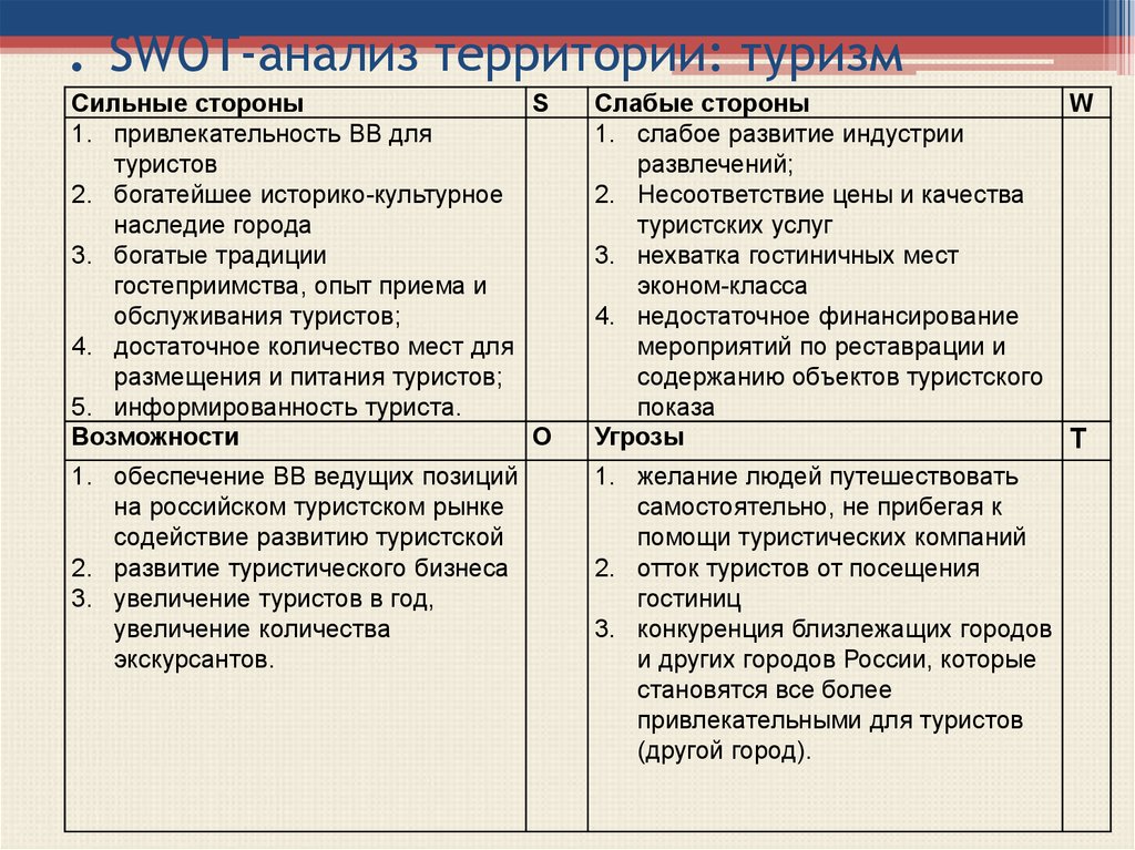 Методика состоит из выявления этих самых «S», «W», «O» и «T», их экспертной оценки и определения направлений совершенствования продукта, производственных процессов, клиентского сервиса, бренда.