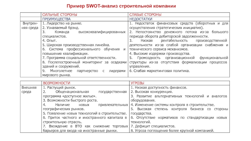 Как сделать анализ по методу SWOT