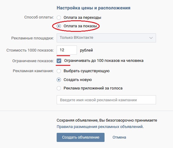 Администрация сервиса ВКонтакте предлагает рекламодателям самостоятельно выбрать из двух принципов оплаты: