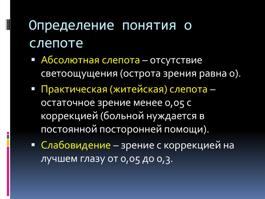 Таким образом, слепота — это не всегда абсолютное отсутствие зрения.