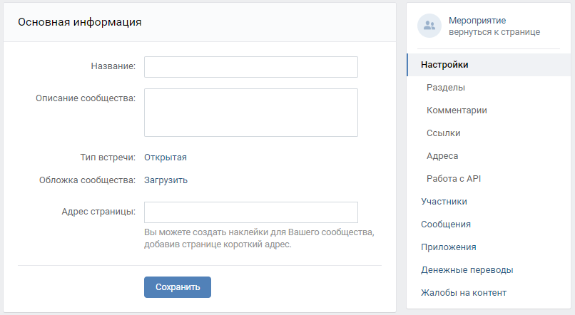 Базовое оформление мероприятия в ВК состоит из следующих шагов: