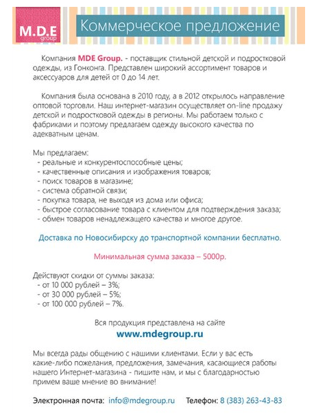 А если речь идет о «холодном» коммерческом предложении, то его размер вообще не должен превышать одной страницы текста, иначе его просто не прочтут.