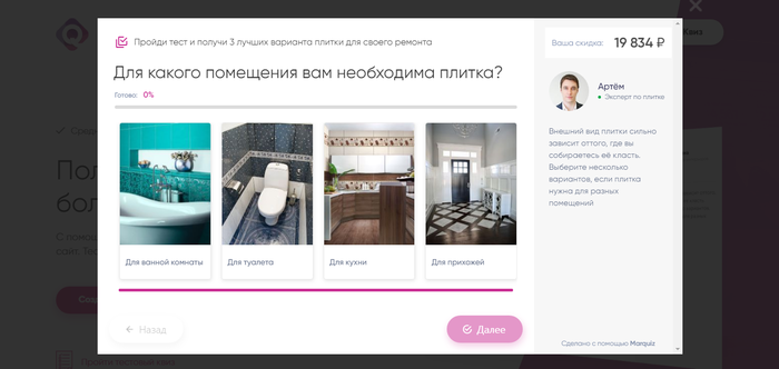 Обычно целями создания квиза являются помощь в решении вопроса или индивидуальное предложение клиенту.