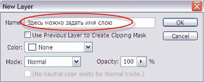 В дальнейшем число увеличивается в порядке возрастания. Желательно сразу переименовать слой, дать ему «говорящее название». Выделив вновь созданный слой, при необходимости можно изменить режим наложения, непрозрачность и прочие настройки. Но гораздо удобнее задать все эти настройки в процессе создания слоя. Для этого следует нажимать вышеуказанную кнопку с зажатой клавишей Alt. При этом снова появится диалоговое окно «Новый слой», с которым Вы уже умеете работать!