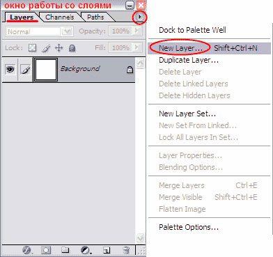 И последний способ создания нового слоя – это через меню палитры «Слои».