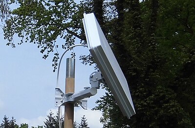 Также на базе ФАР выпускаются плоские компактные антенны для домашнего приёма спутникового ТВ[19][23], которые требуют для установки гораздо меньше места, чем классические «тарелки» сравнимой апертуры. Это позволяет размещать их не только на улице, но и в помещении (на окне, балконе, лоджии и т. п.) при условии, что место установки обеспечивает видимость спутника[24].