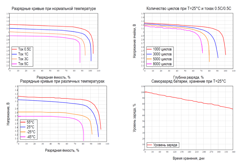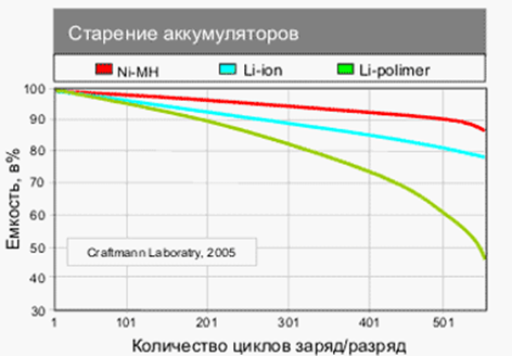 - ΡΠ»Π΅ΠΊΡΡΠΎΡ ΠΈΠΌΠΈΡΠ΅ΡΠΊΠΈΠΉ ΡΠΎΡΡΠ°Π² Π½Π°ΠΊΠΎΠΏΠΈΡΠ΅Π»Π΅ΠΉ β ΡΒ ΠΏΡΠΈΠ±ΠΎΡΠΎΠ² ΡΠΈΠΏΠ° LiCoO2Β ΠΈΠ»ΠΈ LiMn2O4 ΡΠΈΡΠ»ΠΎ ΡΠΈΠΊΠ»ΠΎΠ² ΡΠ°Π·ΡΡΠ΄Π°-Π·Π°ΡΡΠ΄Π° ΡΠΎΡΡΠ°Π²Π»ΡΠ΅Ρ 500β1000, Π°Β ΡΒ ΠΠΠΒ ΡΒ ΡΠΈΠΏΠΎΠΌ Ρ ΠΈΠΌΠΈΠΈ LiFePO4 β 1000β2000 ΠΈΒ Π΄Π°ΠΆΠ΅ 3000;