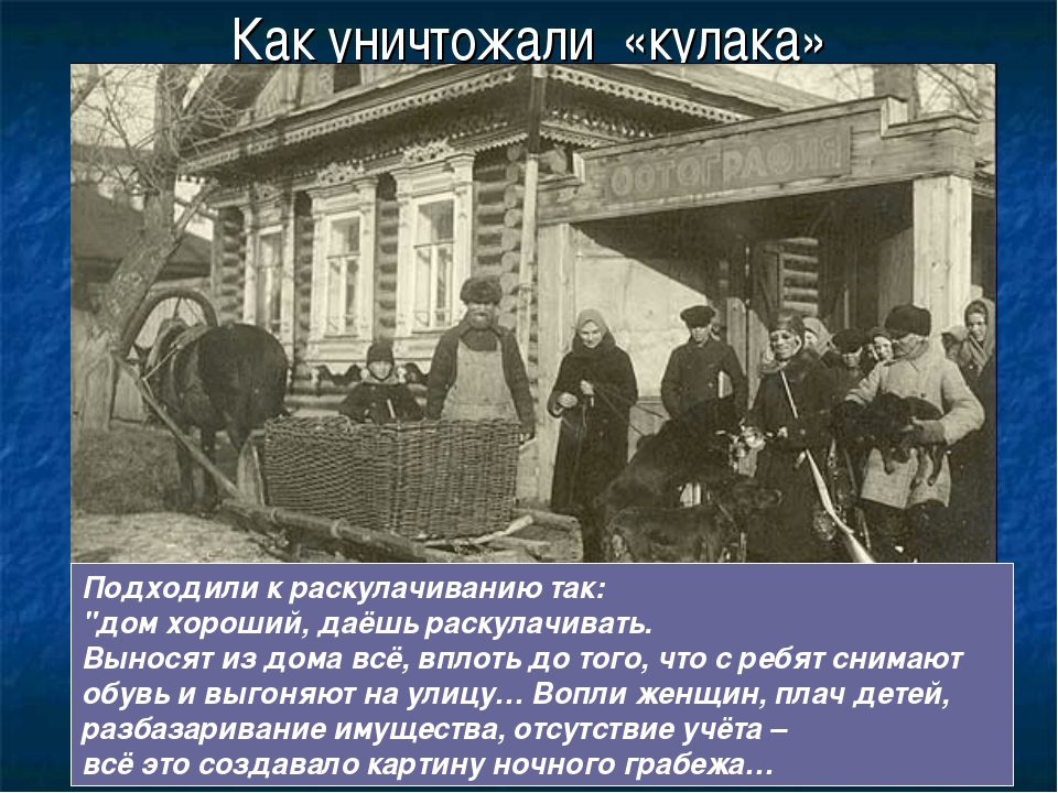 Сергей Красильников: «Раскулачивание» — это слово, относящееся к идеологически-пропагандистскому языку сталинской эпохи. Еще с 1990-х годов историки отказались от подобных штампов и применяют более корректный термин «репрессивное раскрестьянивание».