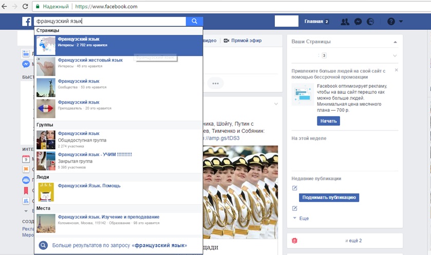 Новая странница будет отображаться на основном экране FB в разделе ВАШИ СТРАНИЦЫ.