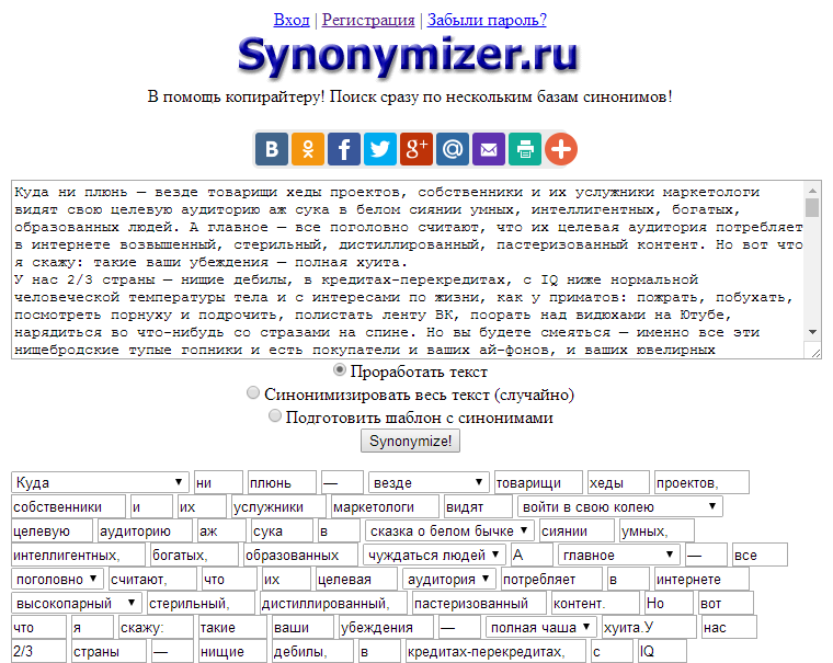 Синонимайзер текста (уникализатор) — отличный помощник для более быстрого рерайта текста.