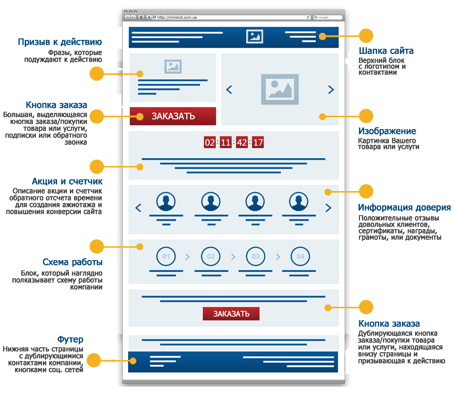 Целевые страницы Целевая страница — это одностраничный веб-сайт, который обычно создается для маркетинговой кампании и побуждает посетителей совершать определенные действия. Контент и дизайн должны быть по делу и вести пользователя к одному CTA (призыву к действию).