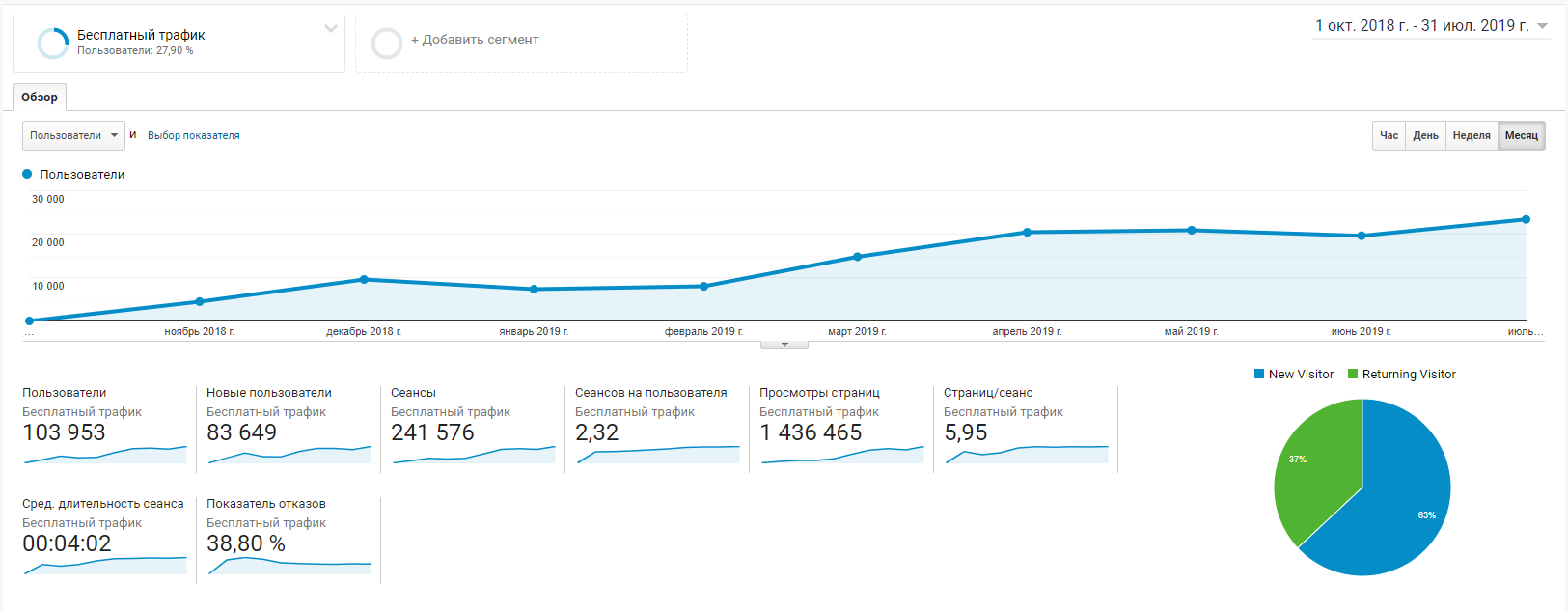 - В некоторых случаях, если соединение с GA было установлено ближе к концу месяца, мы могли собирать месячные данные, но у нас может не быть данных за полную неделю. Вы увидите еженедельные данные, как только у нас будет полный недельный отчет.