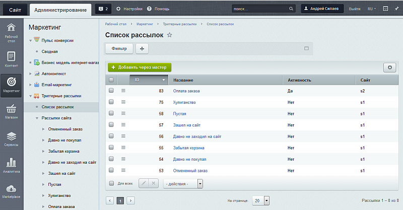 - Π‘ΠΎΠ±ΡΡΠΈΡ (ΡΡΠΈΠ³Π³Π΅ΡΡ) ΠΌΠΎΠ³ΡΡ Π±ΡΡΡ ΡΠ°Π·Π½ΡΠΌΠΈ: Π΄ΠΎΠ±Π°Π²Π»Π΅Π½ΠΈΠ΅ ΡΠΎΠ²Π°ΡΠ° Π²Β ΠΊΠΎΡΠ·ΠΈΠ½Ρ, ΠΎΡΠΎΡΠΌΠ»Π΅Π½ΠΈΠ΅ Π·Π°ΠΊΠ°Π·Π°, ΠΏΠΎΠΏΠ°Π΄Π°Π½ΠΈΠ΅ Π²Β ΡΠ΅Π³ΠΌΠ΅Π½Ρ Π½Π΅Π°ΠΊΡΠΈΠ²Π½ΡΡ ΠΊΠ»ΠΈΠ΅Π½ΡΠΎΠ².