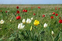 На светло-зеленом фоне молодой травы особенно хорошо смотрятся яркие чаши красных тюльпанов, вся степь выглядит как огромный красочно-пестрый ковер… (слайд 3, 4)