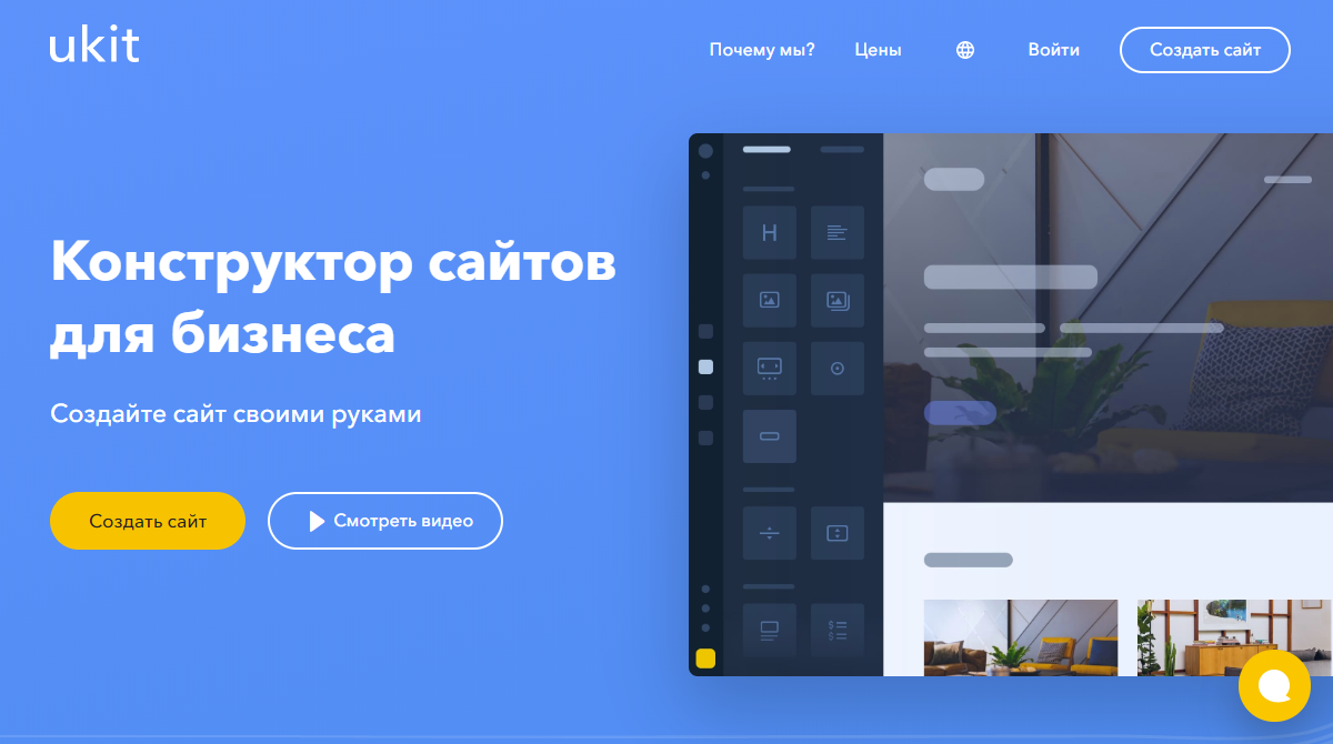 uKit — конструктор сайтов ориентированный на малый и средний бизнес из сферы услуг. Платформа позволяет создать сайт самостоятельно без знаний программирования с помощью простого перетаскивания блоков с элементами и добавления различных виджетов.