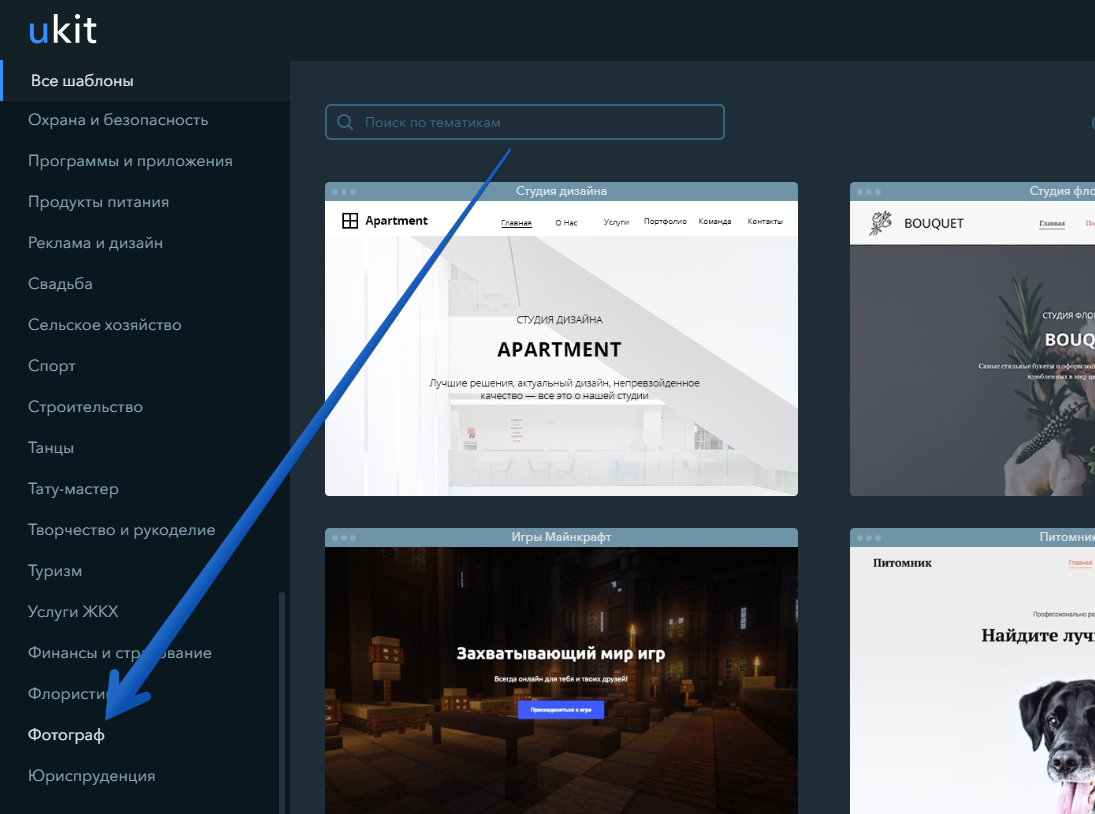 Только одно. После создания учетной записи вам следует выбрать шаблон. В uKit их огромное количество (более 300), и они сгруппированы по тематическим категориям. Это означает, что каким бы бизнесом вы ни занимались, вы обязательно найдете то, что идеально подходит для и . В отличие от некоторых других сервисов, uKit позволяет вам изменять дизайн вашего веб-сайта в любое время, даже после того, как вы нажали «Опубликовать», и контент будет сохранен. Это своего рода облегчение для нерешительных людей.