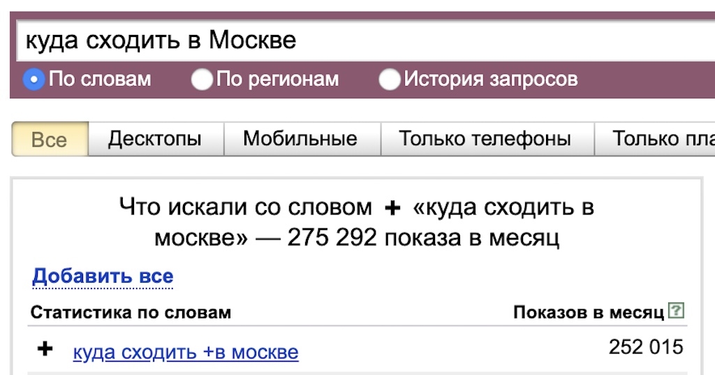 Миф первый. Частотность по Wordstat соответствует частоте запросов в поисковой системе Яндекс