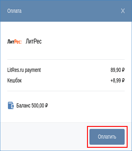 Операция оплаты подтверждается кнопкой «Оплатить».
