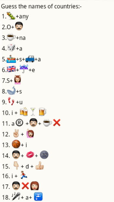 Угадайте известные названия игроков с крикет. Обувная компания & Подземный поезд = ________ Бренд часов и Житель страны = ________ Минеральная вода Ко. и Горный хребет = ________ Имя птицы и Марка пива = ________ Название топлива / Компания по производству одежды = ________ Дерево / Зубная паста = ________ Знаменитый памятник / Марка чая = _________ Марка карандаша и Лорд Танца = ________ Знак рождения на английском языке & Тип заболевания = ________ Название мыла и Музыкальный инструмент = ________ Марка автомобиля и Преданный Господа Рамаса = __________ Название фруктов и Название крема для обуви = ________ Мобильный бренд и Имя фрукта = ________ Название Bulb Co. & Источник энергии = Здесь я даю 15 вещей, которые мы исправляем орфографию каждый раз. Я бросаю вам вызов. B – Пришли мне свою лучшую фотографию. C – Напишите мое имя в своей истории WhatsApp. D – Подари мне подарок. E – Назови мне имя своей возлюбленной. F – Пришли мне свою любимую фотографию. G – Устройте мне вечеринку. H- Изменений ты хочешь во мне. I – Что вы обо мне думаете. J – Задайте мне вопрос, который хотите. K – Дай мне обещание. L – Сколько тебе лет? M – Расскажи мне один из своих секретов. N — Дайте мне ваш личный номер. O – Пришлите мне милое дополнение. P — Назови имя своего врага. Это одна из лучших групповых игр WhatsApp. Вы можете получить полное удовольствие во время этих игр. Одна из лучших вещей в этой игре — лучшее времяпрепровождение и один тип освежения. Вы можете оставить хорошие воспоминания с друзьями, кузенами и членами семьи. Начни получать удовольствие и давай узнаем, что тебе нравится. Всем известно, что WhatsApp — важное приложение для текстовых сообщений. Но это нечто большее. Вы можете использовать его как средство, чтобы повеселиться с друзьями. Существует множество групповых игр WhatsApp, в которые вы можете играть с друзьями и семьей. Если вам кажется, что разговор становится скучным, вы можете легко изменить ситуацию, представив некоторые из этих веселых игр. Более того, они ничего не стоят. Это отличный способ укрепить ваши дружеские отношения. Итак, приступим. Содержание Вот лучшие групповые игры WhatsApp, в которые вы можете играть с друзьями, чтобы укрепить свою связь. Kiss, Marry, Kill — интересная игра, в которую можно играть с друзьями и семьей в Whatsapp. В этой игре игроки могут спрашивать других игроков, кого они целовали, женились и убивали из трех предложенных вариантов. Эти параметры могут варьироваться, например, спортсмены, знаменитости или даже члены группы. Алфавитная игра в WhatsApp включает в себя игру, в которой вы просите своих друзей выбрать букву в алфавите от A до Z, чтобы затем отправить им вопрос на вызов. Правило игры заключается в том, что они должны ответить на вопросы, связанные с выбранным ими алфавитом. Ниже представлены вызовы; СТАТЬЯ ПО ТЕМЕ: Как читать удаленные сообщения в WhatsApp Еще одна групповая игра WhatsApp, в которую вы можете играть с друзьями, — это игра Emoji Dare. В этой игре ваши друзья выбирают смайлик, а затем отправляют вам сообщение, чтобы получить вызов. Просто отправьте это, если вы хотите играть в игру: «Выберите смайлик с этого изображения, и я пришлю вам задание, которое вы должны выполнить. Давай развлечемся!» Вот это вызов; Исправление орфографии — это игра-головоломка, в которой используются перемешанные слова. Здесь вы перепутаете правильное написание слова и позволите вашим друзьям написать его правильно.