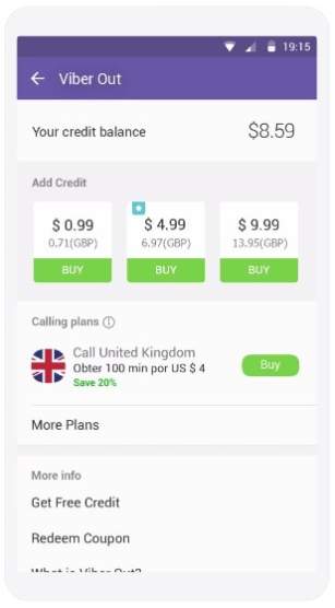 Затем на «Viber Out».