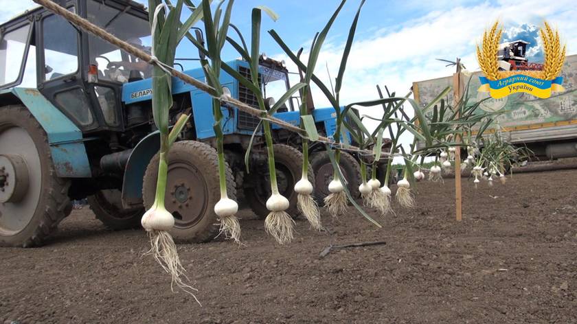 Крім цього для великих площ необхідний спеціалізований комбайн для збирання часнику.