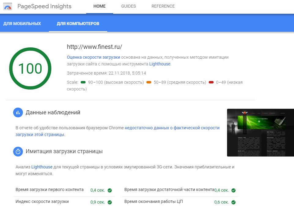 Google рекомендует работать над улучшением скорости работы, если она меньше, чем у 95% веб-ресурсов.
