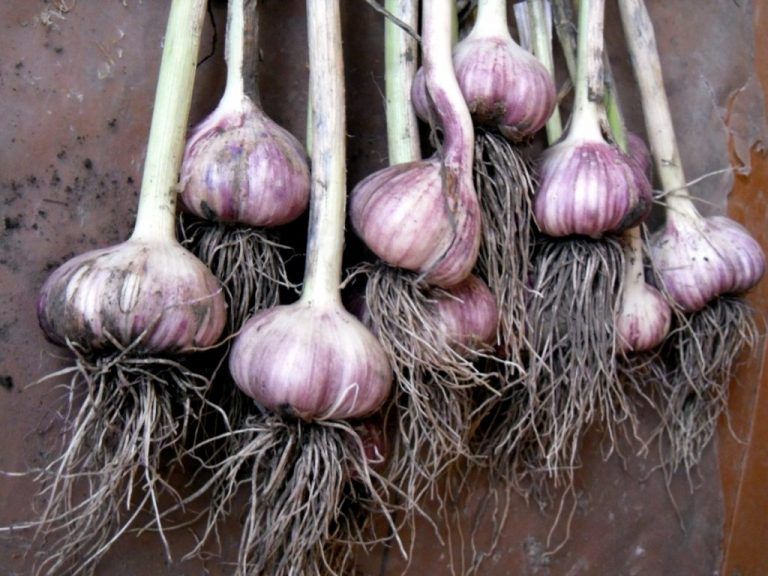 Чеснок готов к сбору, когда есть четыре или пять коричневых листьев.