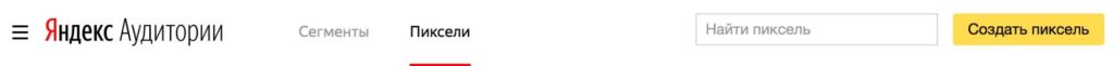 Пиксель – это инструмент, отслеживающий пользователей, видевших вашу медийную рекламу. Создать новый пиксель для своих баннеров можно прямо в Яндекс.Аудиториях, выбрав соответствующую вкладку верхнего меню. Кликните «Создать пиксель»: