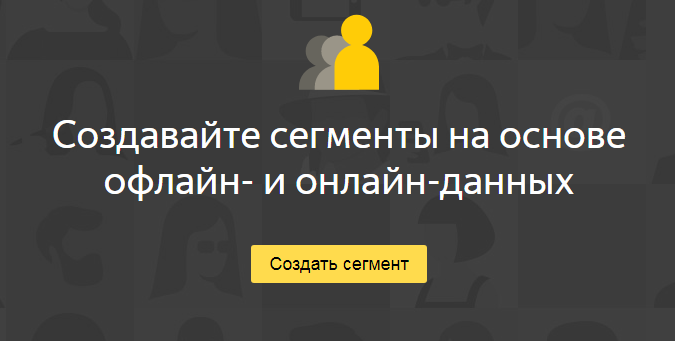 Главная кнопка, используемая при работе с Яндекс.Аудиториями – это «Создать сегмент». Она отображается на главной странице сервиса еще до авторизации в нем: