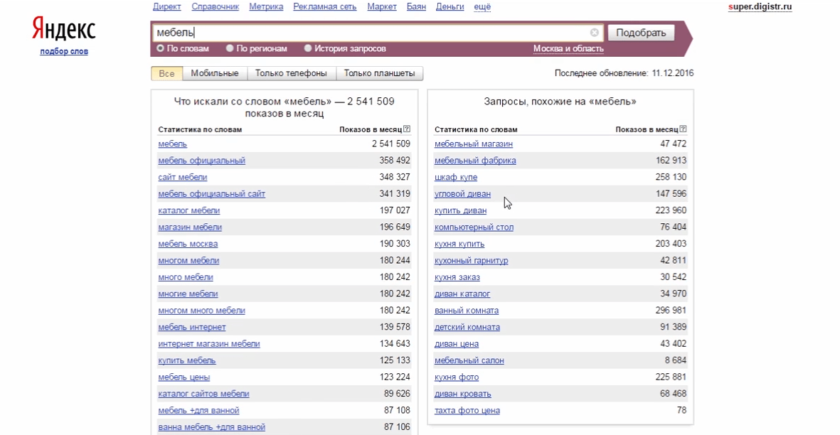 - Ключевое слово входит в заголовок и/или текст объявления.
