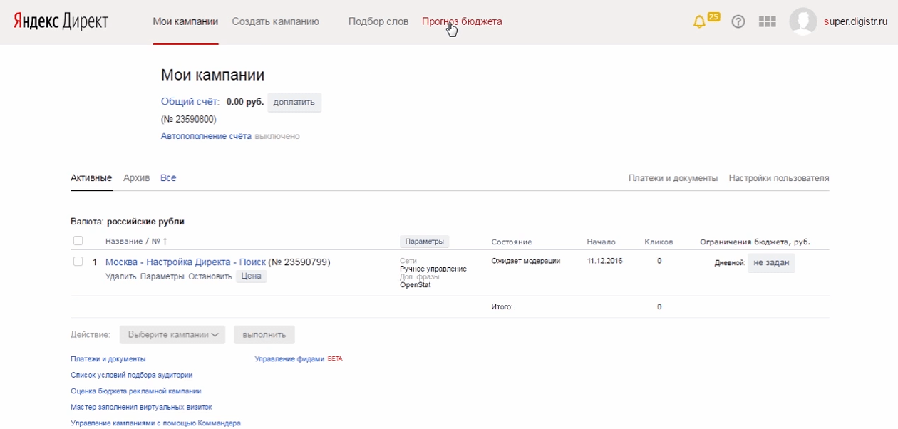 - Задан электронный адрес для почтовых уведомлений. Это позволяет получать информацию об изменениях в РК: объеме трафика, прохождения модерации, наличии средств на счету.