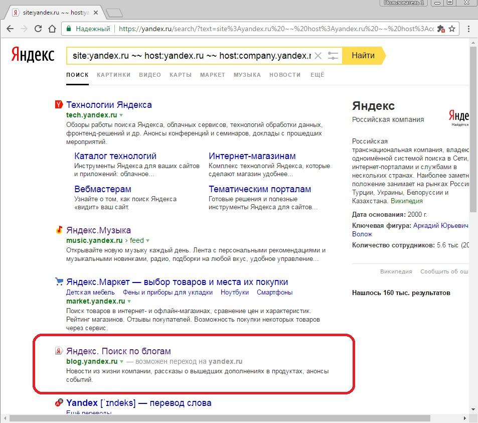 - не показывает, есть ли сервисы Яндекса в выдаче
